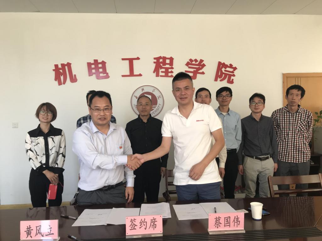 10月10日上午,在梁林校区14号楼3楼会议室举行众恒汽车部件有限公司捐赠签约仪式。众恒汽车部件有限公司蔡国伟董事长和人事经理陈彩虹参加签约仪式。签约仪式由机电工程学院副院长黄风立主持。左春柽院长、机械工程系、车辆工程系、学生就业工作负责人和相关老师参加。