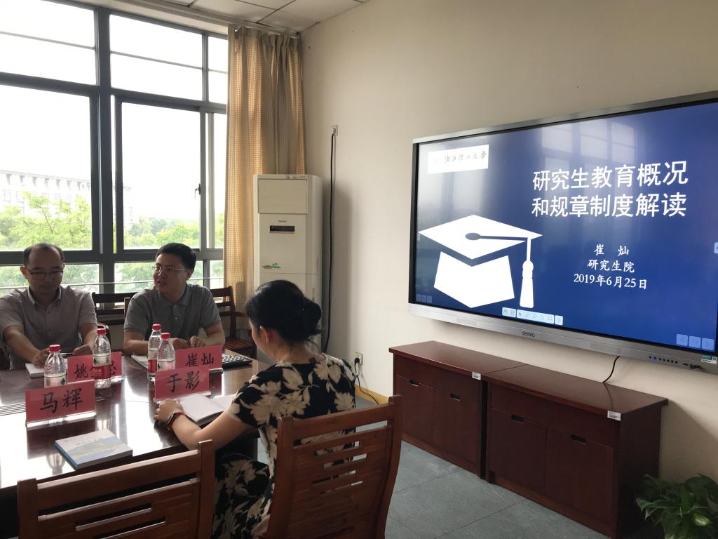 6月25日下午,我校新增浙江理工大学硕士研究生导师培训会在机电工程学院14号楼3楼会议室召开。培训会由浙江理工大学研究生院院长崔灿教授主讲,新增浙江理工大学硕士研究生导师参加培训会。