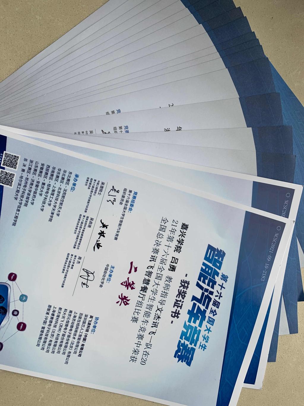 团队成员参加各类专业竞赛获得多项奖项。电信19级学生叶高杰、杨润洪、张露蓉等获得16届全国智能车大赛国家级二等奖,电信18级学生王振宇、廖健熙、王逸涛、党信晗等获得16届全国智能车大赛创意赛国家级二等奖,电信20级学生王铭浪、唐智杰、陈佳雪、张凌婕、冯久源、王恩伟等获得16届全国智能车大赛省级三等奖, 夏硕甲、薛智健、牛妍月等获得16届全国智能车大赛创意赛省级二等奖。18级李缘春、王依涛、郑晓彤等同学获浙江省第17届“挑战杯”交通银行大学生课外学术科技作品竞赛二等奖。近三年团队学生获得学生竞赛获奖共47项,获奖证书如图2所示,包括电子设计大赛、智能车、机器人、职业创业大赛、乡村振兴、安全竞赛等,详细统计信息等如表2所示。