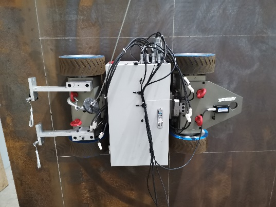 1、朱荷蕾博士与企业深入沟通共同开展爬壁机器人关键技术研发工作,并与企业签订了重大横向研究课题项目。首先对爬壁机器人受力分析分析方面,利用多体动力学建模理论建立爬壁机器人动力学模型,将系统的预定轨迹作为系统约束关系,获得满足约束所需附加力矩的解析表达式及系统的解析动力学方程,揭示爬壁机器人的运动规律。研究机器人前后轮差速控制方法,提高壁面移动的稳定性。然后利用多传感器数据融合的方法获得爬壁机器人定位信息,采用四元数解算姿态角进而实现机器人的定位;研究机器人在作业面上的辅助定位技术,实现机器人自身定位数据的动态矫正和补偿;研究机器人作业路径规划方法,提高机器人壁面运动自适应避障能力。随着合作深入,现已建成磁吸式爬壁机器人相关样机控制系统,如下图所示。