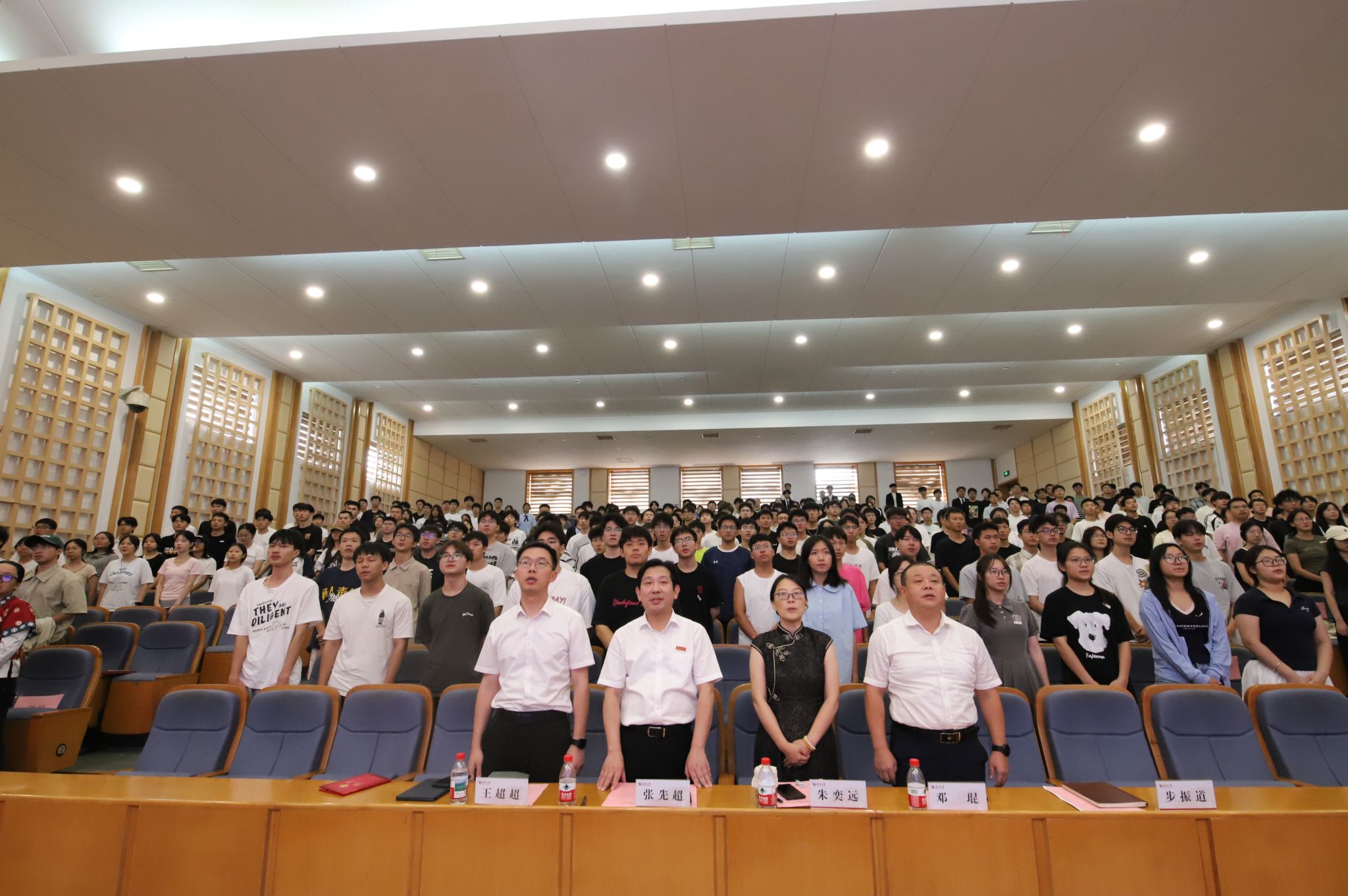 2025级新生开学典礼在学校TCL报告厅庄严举行。本次典礼以“新生第一堂思政课”为主题,融合理想信念教育与学科使命传承,为236名本科生和24名研究生带来一场意义深远、启迪思维的入学仪式。