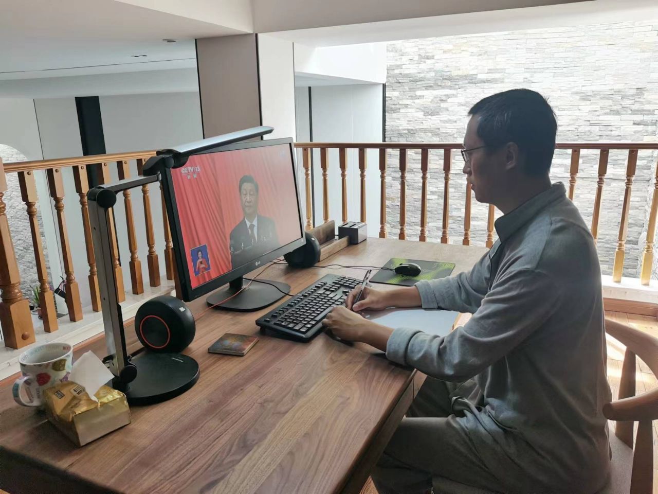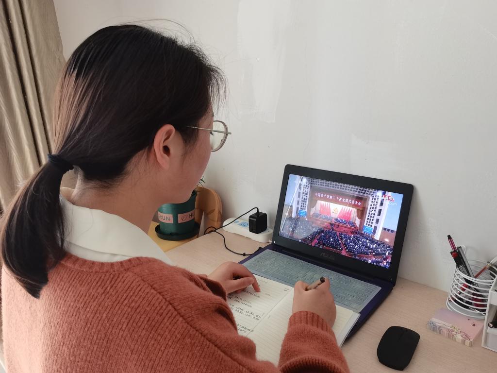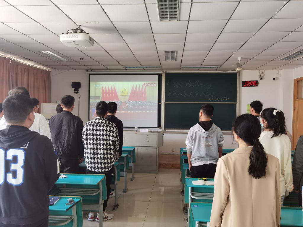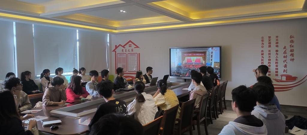 学院采取会场集中观看学习和党员个人自学,线上线下收看相结合的形式进行,在院内设置学生干部、学生党员集中收看会场两个,以支部为单位线下集中收看会场五个。其余师生在宿舍、教室等地自行收看。学院22个党支部,三百余名党员全部收看学习。在收看直播现场,师生党员们边看边做好记录,并就报告中的新提法、新思想进行探讨和交流,切实把握报告广度和深度,深刻领会报告内涵与意义。