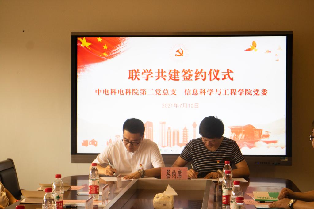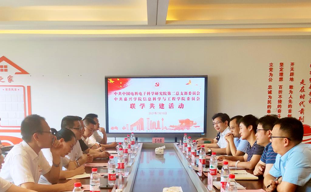 7月10日下午,在我院教工党员之家朱耀东向中电科一行介绍了学院基本情况,谢宏和叶海军就双方党建工作进行了深入交流,并签订了党建结对共建协议。双方表示将进一步着力党的建设,积极探索项目化党建工作新模式,以高度的政治责任感和使命感抓好“结对共建”各项工作,广泛开展技术合作,充分发挥各自优势,努力形成比、学、赶、超的党建工作氛围,进一步激发双方党员担当实干、锐意进取、永远奋斗的干劲和在中心工作、服务大局方面的战斗堡垒作用。最后,大家聆听了我校人文社科处处长彭冰冰教授《红船精神与不忘初心》主题党课。