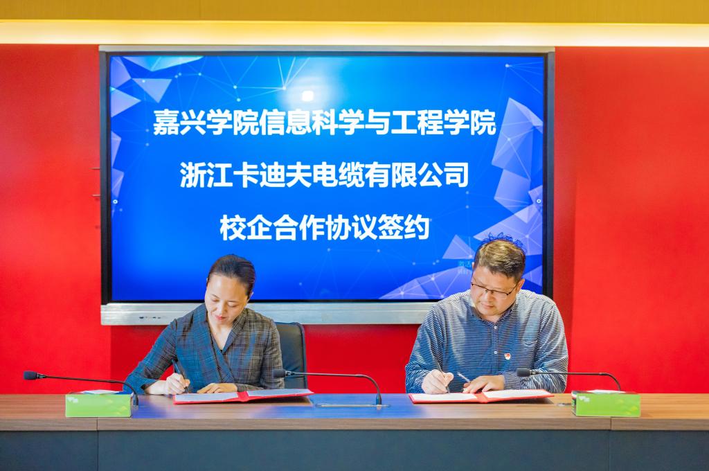 首先朱耀东院长就“一园一博”服务工作站成立契机及启动以来的建设情况、学院团队研究方向领域及成果进行详细介绍,并代表学院与浙江卡迪夫电缆有限公司签署合作协议。