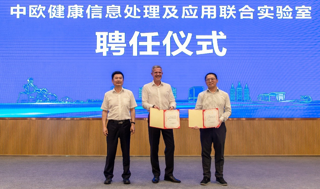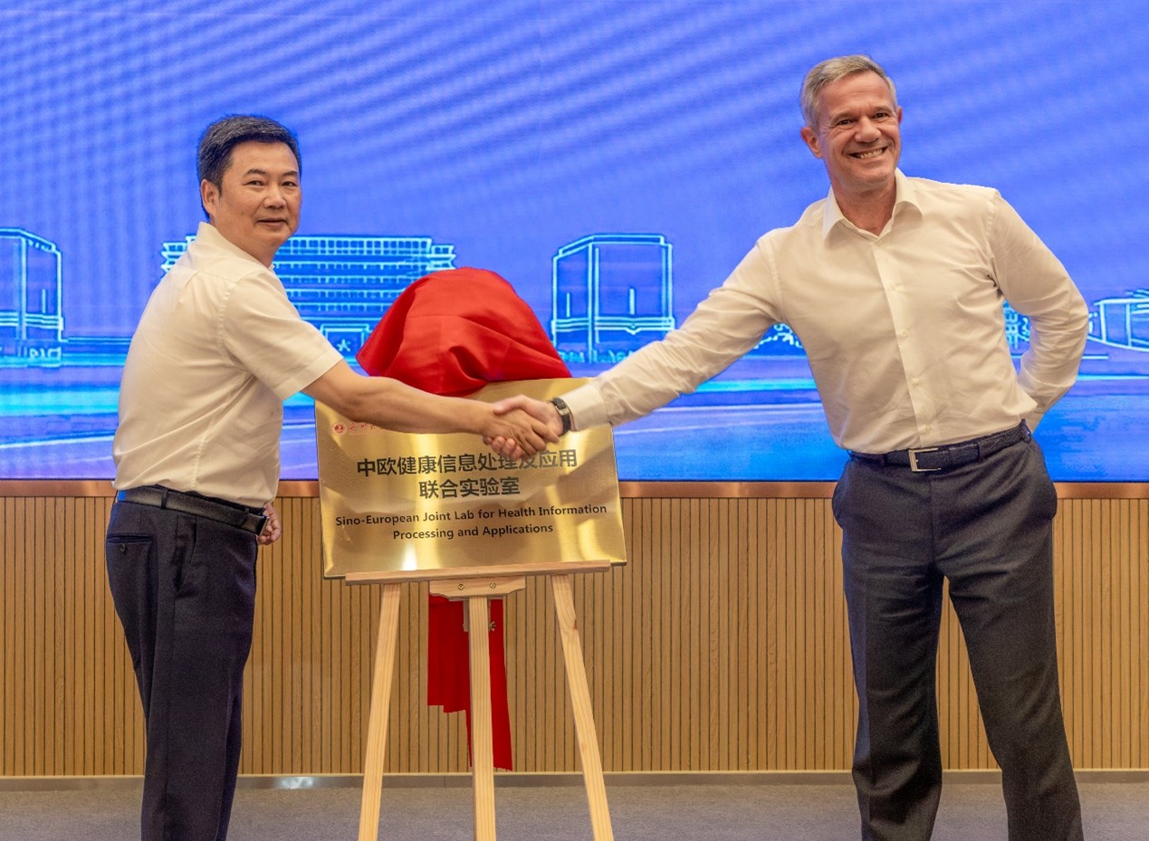 中欧健康信息处理及应用联合实验室”揭牌,实验室共建单位代表共同签订了合作意向书,标志着联合实验室的正式成立。